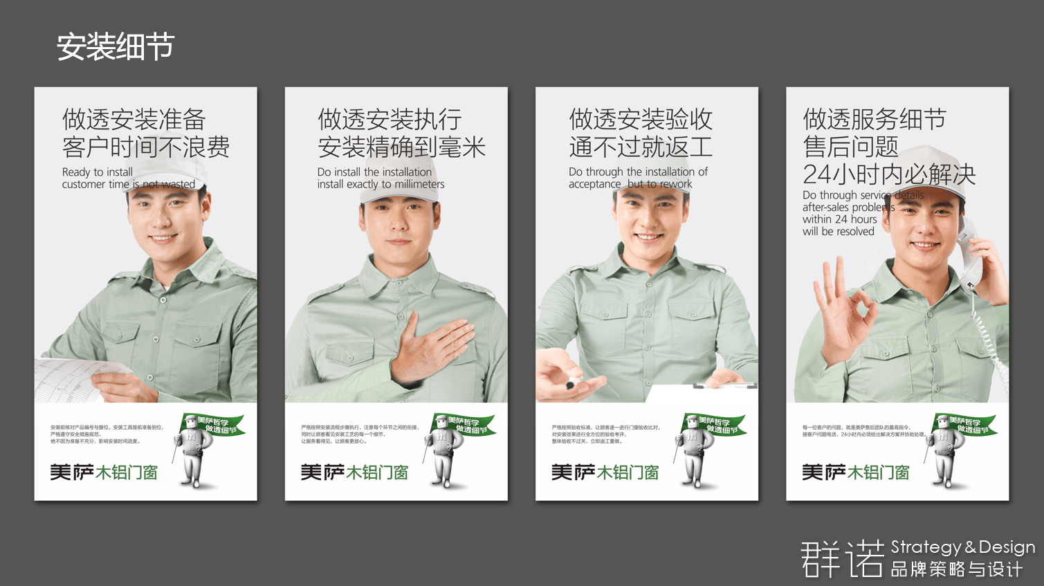 同时,以严谨的德国管家形象,作为品牌超级符号,与“敬请反复推敲”的号召形成合力,创造一种完全不同于现有门窗品牌传播套路的沟通姿态。