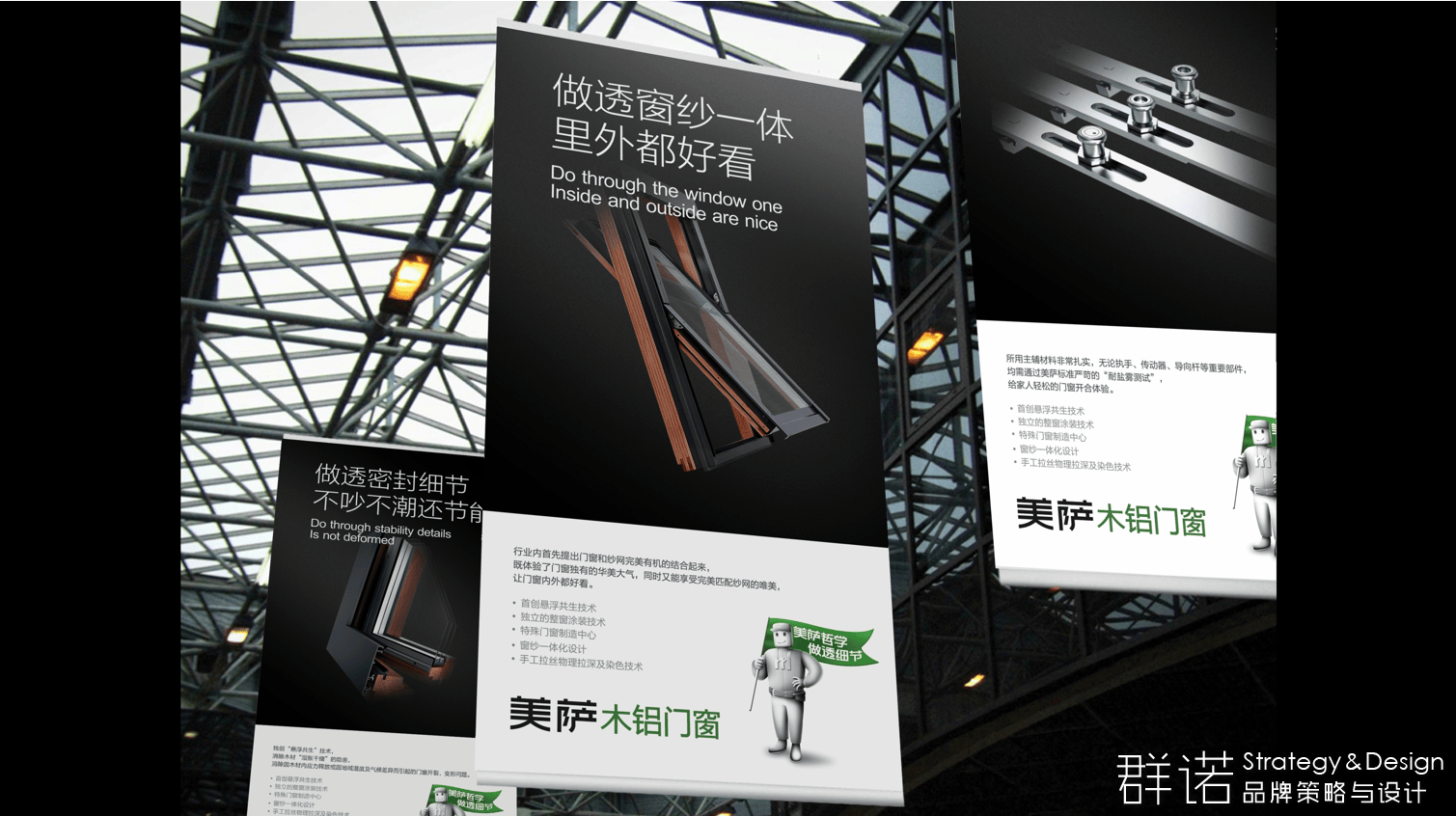 多年以来,群诺帮助各大门窗品牌创新升级,梳理品牌基因,打造统一化、明晰化的门窗品牌价值体系,同时打造门窗品牌文化密码,可视化输出建立门窗品牌识别系统,让消费者能通过品牌关键触点识别、感知品牌。
